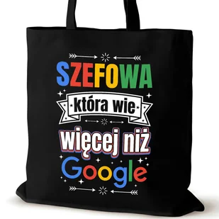 Torba bawełniana szefowej czarna na ramię napisem pracy duża google