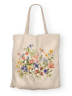 Torba bawełniana z nadrukiem polne kwiaty i ważki