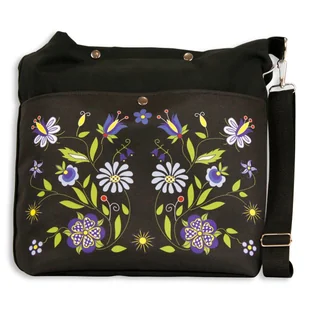 Wytrzymała i pojemna torba shopperka folk – na zakupy z dużą przestrzenią wewnątrz, dodatkowo wyposażona w dwie kieszenie zawierająca elementy ludowego wzornictwa kaszubskiego. Znajdują się tutaj: tulipan, niezapominajki, serca, margerytka, słoneczko, dzwonki w charakterystycznej dla tego regionu kolorystyce. Torba shopperka folk kaszubski z wzorem kwiatowym w kolorze czarnym Torba shopperka folk – zapinana, pojemna, zawierająca dwie kieszenie torba na zakupy z elementami tradycyjnego wzornictwa kaszubskiego takimi jak tulipan, serca, dzwonki, słoneczko. Jest wyposażona w odpinany pasek do przenoszenia, którego długość można regulować.