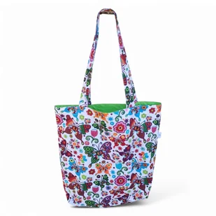 Torba na zakupy bawełniana ekologiczna Shopperka motyle folk Czas wymienić plastikowe siatki na modne wzorzyste eko torby. Ekologiczna torba na zakupy uszyta z bawełny 100% z bawełnianą podszewką w zielonym kolorze. Torba jest duża, pojemna z długimi mocno przyszytymi wzmocnionymi rączkami i bawełnianą podszewką. Dwie warstwy tkaniny gwarantują, że torba jest mocna i wytrzyma nawet najcięższe zakupy. Staranne i dokładne wykonanie sprawia, że torba jest wyjątkowa i spowoduje, że zapomnisz o noszeniu zakupów w nieestetycznych foliowych siatkach.