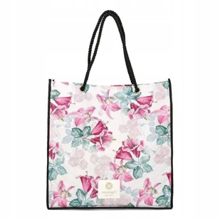 Torba Torebka Damska Na Zakupy MONNARI Duża Pojemna A4 w Kwiaty Biała