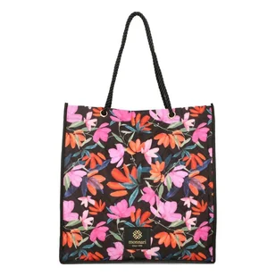 Torba Torebka Damska Na Zakupy MONNARI Duża Pojemna A4 w Kwiaty Czarna