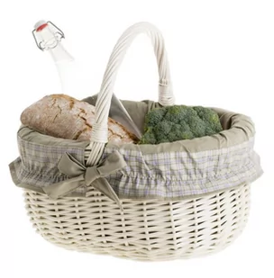 Wiklinowy Kosz "Wałkowy" na Zakupy Obszyty Tkaniną Wybielany 42x34 H23/36 cm