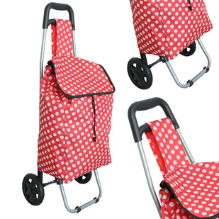 Wózek na zakupy torba zakupowy na kółkach składany ⭐⭐⭐⭐⭐ Wózek zakupowy torba na kółkach czerwona w groszki 30l
