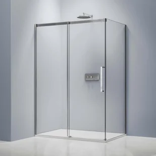 Narożny prysznic z oszczędzającym miejsce systemem drzwi przesuwnych i technologią cichego domykania Soft Close.