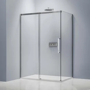 Narożny prysznic z oszczędzającym miejsce systemem drzwi przesuwnych i technologią cichego domykania Soft Close.
