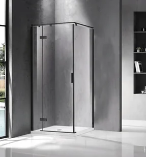 BRAVAT Kabina prysznicowa kwadratowa 1-skrzydłowa 90x90x200 SNB 90/90 L czarny mat szkło transparentne lewa z powłoką Nano Glass