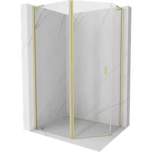 Mexen Mist L kabina prysznicowa pięciokątna asymetryczna uchylna 90x80 cm, transparent, złota szczotkowana - 8A8L-090-080-55-00