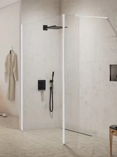 Ścianka prysznicowa typu WALK IN 90 cm ze ścianką boczną New Modus White New Trendy. Kabina wyposażona jest w bezpieczne, hartowane szyby o grubości 8mm, z powłoką ochronną Active Shield. Kolekcja objęta 7-letnim okresem gwarancji. Kabina może być montowana zarówno z brodzikiem jak i bez.