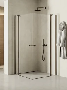 K-4397 New Soleo Gunmetal Brushed New Trendy Kabina prysznicowa z podwójnymi drzwiami otwieranymi na zewnątrz i do wewnątrz. Zawias kolumnowy zastosowany w drzwiach NEW SOLEO zapewnia szerokie wejście.