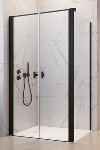 Eleganckie czarne detale. Wewnętrzny odbojnik zintegrowany z uchwytem. Zawias rurowy z innowacyjnym systemem pozycjonowania drzwi. Mechanizm unoszenia i opuszczania drzwi zapobiega niszczeniu uszczelki i gwarantuje cichą i bezawaryjną prac. Powłoka Easy Clean - optymalnie zabezpiecza przed zanieczyszczeniami i ułatwia utrzymanie kabiny w czystości.
