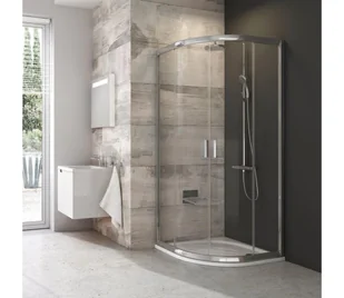 Czteroczęściowa, ćwierćokrągła kabina prysznicowa Blix w eleganckim wykończeniu błyszczący chrom stanowi idealne połączenie nowoczesnego designu, jakości i praktyczności. Konstrukcja składa się z dwóch stałych prostych segmentów oraz dwóch giętych paneli pełniących funkcję drzwi przesuwnych, które zapewniają płynne i ciche przesuwanie podczas otwierania. Kabina wykonana jest z bezpiecznego, przezroczystego szkła o grubości 6 mm, pokrytego powłoką ochronną Ravak AntiCalc zapobiegającą osadzaniu się kamienia wapiennego, co znacznie ułatwia utrzymanie w czystości. O promieniu 550 mm i wysokości 190 cm zapewnia wystarczającą przestrzeń do komfortowego korzystania z prysznica, nie sprawiając przy tym wrażenia masywnej. Montaż możliwy jest w wykończonym narożu łazienki na brodzik Ravak Elipso Pro Flat lub bezpośrednio na podłodze z wbudowanym odpływem liniowym lub wpustem podłogowym.