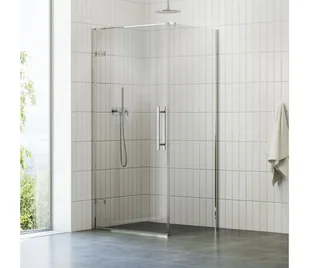 Kompletny narożny zestaw prysznicowy Cool! składa się z jednoczęściowych drzwi zawiasowych i stałej ścianki prysznicowej, tworzących narożny zestaw o wymiarach 80 x 80 cm. Wysokość całego produktu to standardowe 195 cm. Profile w błyszczącym chromowym wykończeniu, a wypełnienie stanowi szkło bezpieczne o grubości 6 mm z przezroczystym wykończeniem. Szkło jest pokryte ochronną warstwą Ravak AntiCalc, która ułatwia konserwację i zapobiega osadzaniu się kamienia. Drzwi wyposażone są w niezawodny system zawiasowy.