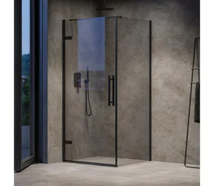 Kompletny narożny zestaw prysznicowy Cool! składa się z jednoczęściowych drzwi zawiasowych i stałej ścianki prysznicowej, tworzących narożną konfigurację o wymiarach 80 x 80 cm. Wysokość całego produktu to standardowe 195 cm. Profile są w czarnym wykończeniu, a wypełnienie stanowi szkło bezpieczne o grubości 6 mm z przezroczystym wykończeniem. Szkło pokryte jest powłoką ochronną Ravak AntiCalc, która ułatwia konserwację i zapobiega osadzaniu się kamienia. Drzwi wykorzystują niezawodny zawiasowy system otwierania.