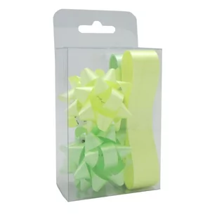 zestaw ozdób do pakowania prezentów zawiera: 2 rozetki i 2 pasma wstążek kolor: miętowy i żółty