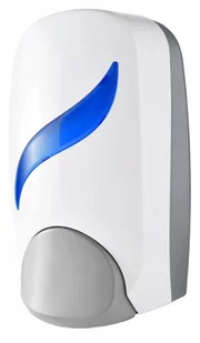 Estetycznie wykonany, duży dozownik z przyciskiem, przeznaczony do dozowania mydła w płynie. Posiada pojemnik o pojemności 1000ml. Obudowa wykonana z wysokiej jakości tworzywa ABS zamykana na kluczyk. W zestawie kołki do montażu na ścianie.