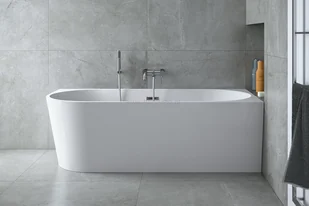 Besco ZOYA Wanna prostokątna asymetryczna 150x75 Prawa + maskownica syfonu z przelewem grafit WAS-150-ZPG