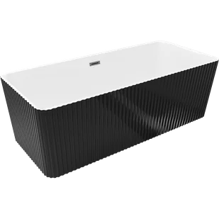 Mexen Nila wanna wolnostojąca ryflowana 170 x 75 cm, biała/czarna, przelew gun gray szczotkowany - 52841708075-66