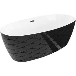 Mexen Olea wanna wolnostojąca wzór 170 x 80 cm, biała/czarna, przelew czarny - 52821708075-70