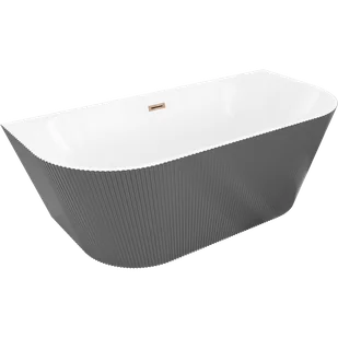Mexen Oris wanna wolnostojąca przyścienna ryflowana 150 x 75 cm, biała/szara, przelew różowe złoto - 52871507562-60
