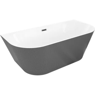 Mexen Oris wanna wolnostojąca przyścienna ryflowana 170 x 80 cm, biała/szara, przelew czarny - 52871708062-70