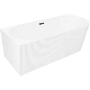 Mexen Silo wanna wolnostojąca narożna lewa ryflowana 150 x 75 cm, biała, przelew czarny - 52891507500L-70
