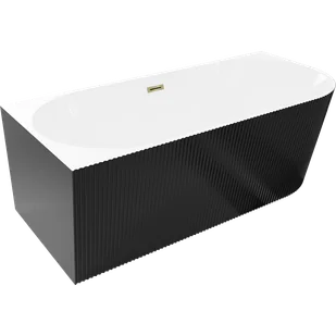 Mexen Silo wanna wolnostojąca narożna lewa ryflowana 150 x 75 cm, biała/czarna, przelew złoty- 52891507575L-50