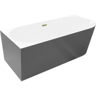 Mexen Silo wanna wolnostojąca narożna lewa ryflowana 150 x 75 cm, biała/szara, przelew złoty - 52891507562L-50