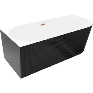 Mexen Silo wanna wolnostojąca narożna lewa ryflowana 170 x 80 cm, biała/czarna, przelew miedź szczotkowana - 52891708075L-65