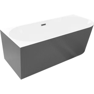 Mexen Silo wanna wolnostojąca narożna lewa ryflowana 170 x 80 cm, biała/szara, przelew gun gray szczotkowany - 52891708062L-66