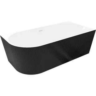Mexen Silo wanna wolnostojąca narożna prawa ryflowana 150 x 75 cm, biała/czarna, przelew biały - 52891507575P-20