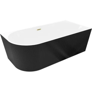 Mexen Silo wanna wolnostojąca narożna prawa ryflowana 150 x 75 cm, biała/czarna, przelew złoty szczotkowany - 52891507575P-55