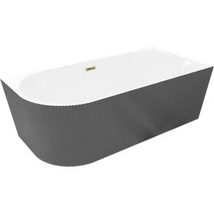Mexen Silo wanna wolnostojąca narożna prawa ryflowana 150 x 75 cm, biała/szara, przelew złoty - 52891507562P-50