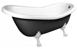 Wanna wolnostojąca 169x75x72cm czarna RETRO nogi białe Uwaga: towar dostępny na zamówienie, czas oczekiwania około 45 dni Wanna wykończona jest żelkotem czyli materiałem używanym do zapewnienia wysokiej jakości wykończenia widocznej powierzchni kompozytu wzmocnionego włóknem. Najczęściej żelkotami są polimery termoutwardzalne na bazie chemii epoksydowej lub nienasyconej żywicy poliestrowej. Żelkoty to modyfikowane żywice, które nakłada się na formy w stanie ciekłym. Materiał ten używany jest również w wykańczaniu powierzchni jachtów czy łodzi.