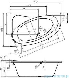 Riho Lyra/Aryl wanna asymetryczna 153,5x100,5cm prawa nóżki+syfon B021001005/207096/208865 | Darmowa dostawa