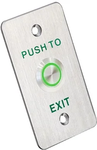 OpisPrzycisk zwalniający drzwi do zastosowań zewnętrznych z podświetleniem i panelem nierdzewnym. IP68 Styk NO Obciążalność: 200mA przy 30V DC Zasilanie diody: 5-24VDC Kolor diody: zielony Wymiary: