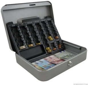 Solidna i poręczna, wysokiej jakości stalowa walizka z sortownikiem do monet jest idealnym miejscem do przechowywania wartościowych przedmiotów.Na dnie jest sporo miejsca na przykład na rachunki, paragony, monety, banknoty i inne przydatne przedmioty. Zastosowanie mocnego zamka patentowego zapewnia dużą ochronę przed dostępem do środka kasetki niepowołanych osób (2 klucze w zestawie.)