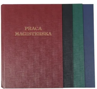 Twarda oprawa systemu METALBIND składająca się z okładki przedniej i tylnej w formacie A4+ pionowo, które bindowane są za pomocą metalowego kanału. Okładka przednia posiada wyzłocony napis Praca Magisterska . Dostępne kolory: czarny, niebieski, bordowy oraz zielony. Do użycia z kanałami O.