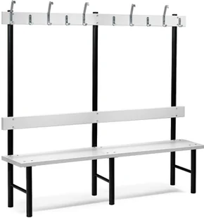 Ławki szatniowe o dł. 2000mm z szarego laminatu. Pojedyncza ławka z oparciem i szynami oraz hakiem po obu stronachSzary wysokociśnieniowy laminatGalwanizowane elektrolitycznie hakiMocna i wytrzymałaMocne i solidne ławki do szatni. Idealnie zaoszczędzają miejsce i są idealnym rozwiąniem na umieszczenie w środku pomieszczenia jak i pod ścianą. Zastosuj ławki w szatniach pojedynczo lub stwórz moduły składajace sie z wielu parti- możliwości są nieograniczone.