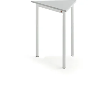 Stół w kształcie trójkąta, który oferuje elastyczne opcje wyposażenia sali lekcyjnej. Stół oferuje regulowane stopki, które umożliwiają wypoziomowanie na nierównym podłożu i jest dostępny w kilku różnych wzorach. Produkt testowany i certyfikowany zgodnie z normą EN 1729. Połącz inne stoły z tym meblem w kształcie trójkąta i stwórz ciekawe wyposażenie w sali lekcyjnej.