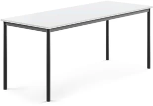 Prostokątny blat z laminatu wysokociśnieniowego zapewnia twardą, wytrzymałą i łatwą w utrzymaniu w czystości powierzchnię. Blat osadzony w membranie tłumiącej dźwięki, idealny wybór do klas szkolnych. Ponieważ blat jest prostokątny, można w pełni korzystać z przestrzeni pomieszczenia. Może być połączony z innymi prostokątnymi lub kwadratowymi stołami, dla stworzenia większej powierzchni roboczej. Stół Sonitus położony na stalowej ramie z nogami wykonanymi z trwałych, okrągłych rur. Cała rama malowana proszkowo w dyskretnym kolorze.