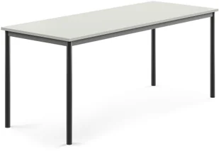 Prostokątny blat z laminatu wysokociśnieniowego zapewnia twardą, wytrzymałą i łatwą w utrzymaniu w czystości powierzchnię. Blat osadzony w membranie tłumiącej dźwięki, idealny wybór do klas szkolnych. Ponieważ blat jest prostokątny, można w pełni korzystać z przestrzeni pomieszczenia. Może być połączony z innymi prostokątnymi lub kwadratowymi stołami, dla stworzenia większej powierzchni roboczej. Stół Sonitus położony na stalowej ramie z nogami wykonanymi z trwałych, okrągłych rur. Cała rama malowana proszkowo w dyskretnym kolorze.
