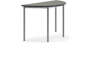 Stół SONITUS, półokrągły, 1200x600x760 mm, ciemnoszare linoleum, szary aluminium