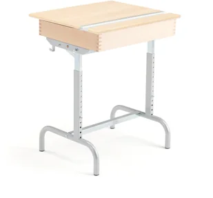 Ławka szkolna z ręczną regulacją wysokości i blatem, który można ustawić pod kątem. Blat posiada trwałą i odporną na uszkodzenia powierzchnię. Ławka szkolna o nowoczesnym designie. Wytrzymuje intensywne użytkowanie w środowisku szkolnym. Elastyczna rama pozwala łatwo dostosować ławkę do krzesła i użytkownika.