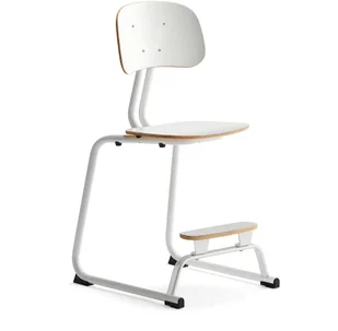 Wszechstronne, wygodne krzesło szkolne z wyprofilowanym siedziskiem, zaokrąglonym oparciem i haczykiem na torbę lub plecak. Unikalna konstrukcja umożliwia siedzenie na krześle na cztery różne sposoby. Krzesło jest dostępne w wariancie z nogami lub na płozach w kilku wysokościach i kolorach. W zestawie znajduje się podnóżek, który można regulować na dwóch wysokościach. Usiądź w klasie w ulubiony sposób!
