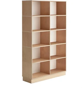 Regał wykonany z lakierowanej sklejki brzozowej, co zapewnia atrakcyjny i wytrzymały wygląd. Panel tylny pełnej wysokości i podstawa dodają regałowi elegancji.