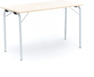 Nasz składany stół dostarczany jest z grubym blatem imitującym strukturę drewna bukowego lub brzozowego wykonanym z laminatu wysokociśnieniowego HPL. Laminat ten jest zarówno wytrzymały, jak i łatwy do utrzymania w czystości. Nasz składany stół posiada stabilną ramę lakierowaną na kolor srebrny. Stół składany Nicke może być używany samodzielnie, ale można również ustawić wiele stołów, tworząc dużą powierzchnię do pracy.