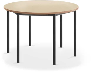 Stół z okrągłym blatem o właściwościach tłumiących dźwięk. Wyposażony w lakierowaną proszkowo ramę z rur stalowych o okrągłym przekroju. Blat z przyjazną dla środowiska powierzchnią o właściwościach tłumiących dźwięk. Produkt testowany i certyfikowany na zgodność z normą EN 1729. Wiele czynników podwyższa poziom hałasu w klasie: szuranie krzesłami, stukanie o meble, trzaskanie szufladami to jedynie kilka czynników, które mają na niego wpływ. W rezultacie obniża się koncentracja i wydajność zarówno uczniów, jak i nauczycieli. Stół SONITUS pomaga rozwiązać ten problem dzięki zastosowanemu blatowi o właściwościach wytłumiających.