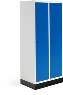 Szafka szkolna z dwiema przegrodami pełnej wysokości. Każda przegroda jest wyposażona w trzy niewielkie półki i drążek na wieszaki z podwójnym haczykiem. Rama i drzwi są wzmocnione. Nasze szafy dostarczamy bez zamków (patrz akcesoria). Szafki szkolne Roz produkujemy we własnych fabrykach. Każda szafka jest pojemna i wytrzymała, dzięki czemu sprawdzi się w trudnym środowisku szkolnym.