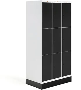 Szafka szkolna z trzema przegrodami pełnej wysokości. Każda przegroda jest wyposażona w trzy niewielkie półki i drążek na wieszaki z podwójnym haczykiem. Rama i drzwi są wzmocnione. Nasze szafy dostarczamy bez zamków (patrz akcesoria). Szafki szkolne Roz produkujemy we własnych fabrykach. Każda szafka jest pojemna i wytrzymała, dzięki czemu sprawdzi się w trudnym środowisku szkolnym.